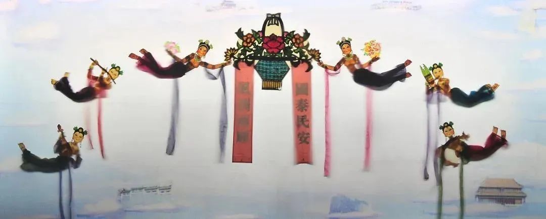 改编自敦煌壁画,首次以皮影正面影身的形式呈现,其中琵琶仙形象庄重、色彩艳丽、婀娜多姿,表演细腻生动,韵味十足。